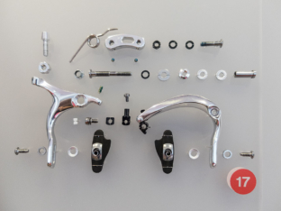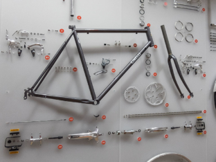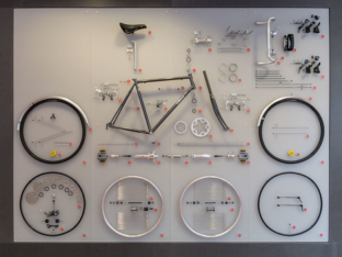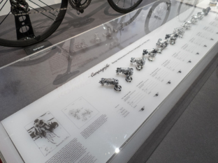 Die von mir entwickelten Installationen sind die 9 an der Wand schwebenden Schweizer Velos von 1936-1988, die Meilensteine der Campagnolo Wechsel vom ersten Modell Gran Sport bis zum Super Record 11 Wechsel aus Carbon und ein komplett zerlegtes Cinelli Gazzetta della Strada Velo als Explosions-Installation. Die Ausstellung dauert bis 30. Juli 2017.