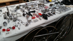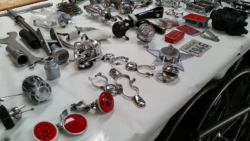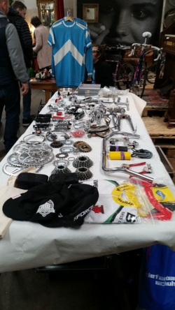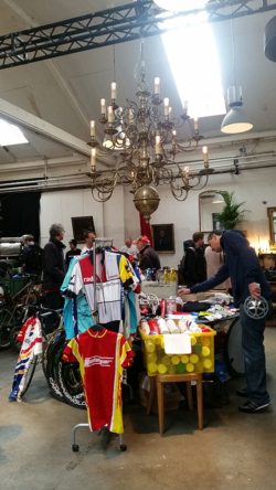 Nach vielen Jahren in der Roten Fabrik hat dieses Jahr der Original Pizza Cup Teilchenbeschleuniger in der Amboss Rampe im Kreis 5 stattgefunden. Ein einzigartiges Ambiente für das reichhaltige Angebot an Veloteilen, Tricots und Velos. Natürlich war kickintonextgear mit weiss gedecktem Tisch und einem Teilemix dabei und wurde da und dort auf den Tagi Artikel oder die Ausstellung im Gewerbemuseum Winterthur angesprochen. Ein voller Erfolg! Ein fetter Dank an die Pizza Cup Crew.